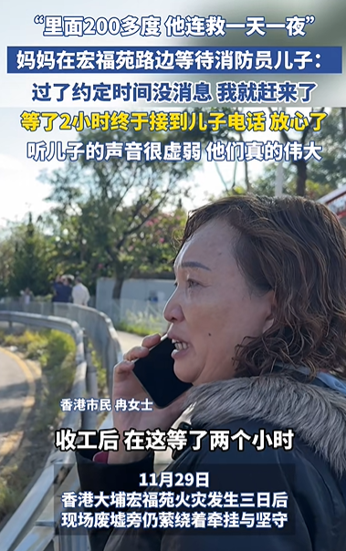 11月29日,香港大埔宏福苑火灾发生三日后,现场废墟旁仍萦绕着牵挂与坚守。64岁的香港市民冉女士静静伫立第一配资门户,目光紧锁火灾后的废墟楼宇——她在等待已连续救援24小时的消防员儿子。