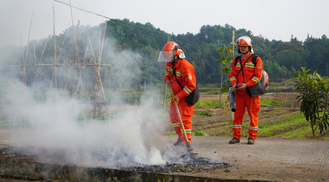 队员们身着统一救援服,整齐列队,在接受工作部署后,携带风力灭火机、扑火把等专业装备,深入田间地头和重点林区,严格排查火险隐患。针对巡逻中发现的农户焚烧秸秆行为,如有蔓延上山的危险将立即进行扑灭,并对群众宣传农事用火审批报备制度, 讲解森林火灾的危害性和防火知识,引导群众自觉遵守防火规定。